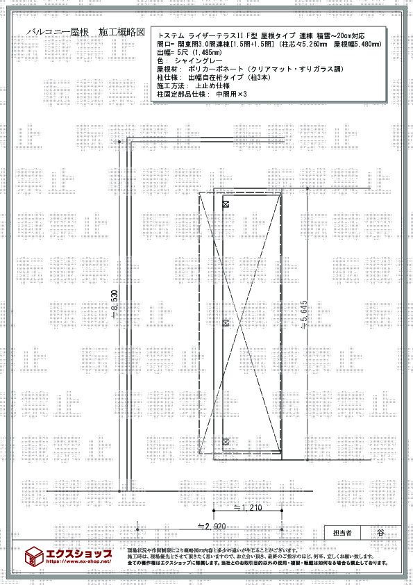 | サイズ | 屋根幅 5,480mm 出幅 1,485mm |