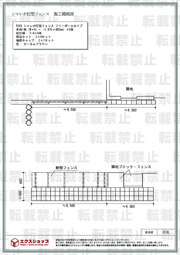 シャレオR2型フェンスの施工をご依頼頂きまして、誠に有り難うございます。オータムブラウンのお色が落ち着いたお仕上がりですね。ブロックの上に施工することにより、目隠しとしての効果を発揮し、ご家族のプライバシーもしっかりと守られるものと存じます。今後も絶えず企業努力を続け、更にお客様にご満足頂けるサービスを目指して参ります。また機会がございましたら、是非エクスショップにご用命頂きますよう宜しくお願い致します。