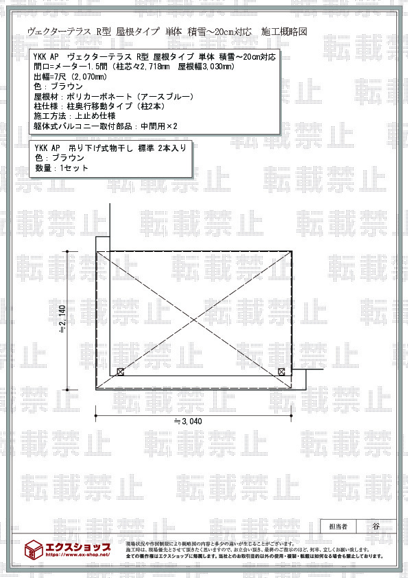 サイズ | 屋根幅 3,030mm 出幅 2,070mm |