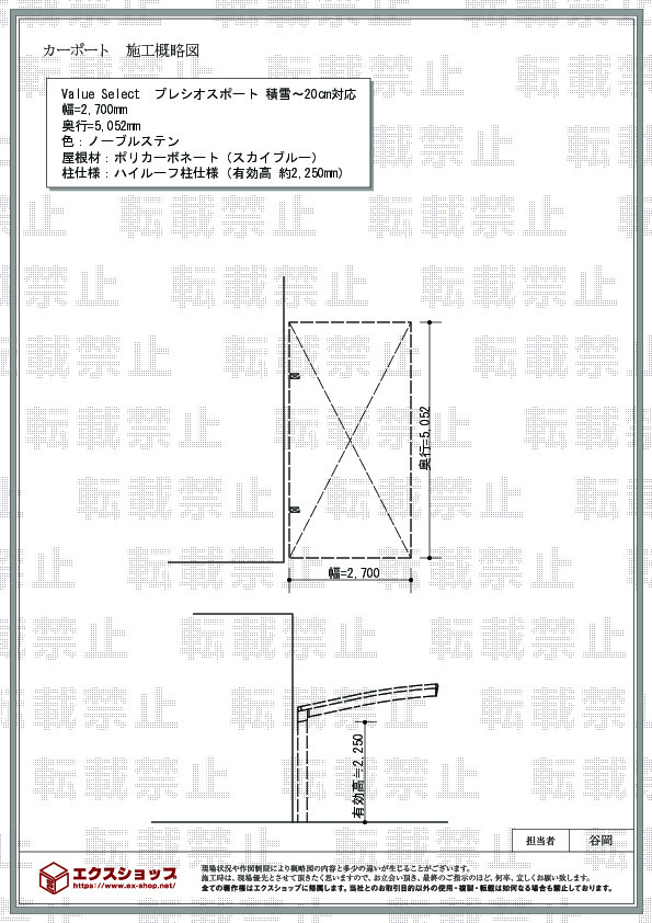 この度は、プレシオスポートの施工ご依頼を頂き誠に有り難うございます。弊社では、格安のお値段で最高品質のご提供を致しておりますので、ご満足頂けるお仕上がりとなりましたこと、大変嬉しく存じます。爽やかで上品なお仕上がりでございますね。片側支柱ですっきりとしており、とても素敵でございます。今後も、お客様にご満足頂ける様、日々精進して参りますので、又機会がございましたら是非エクスショップをご利用下さいますよう、宜しくお願い致します。