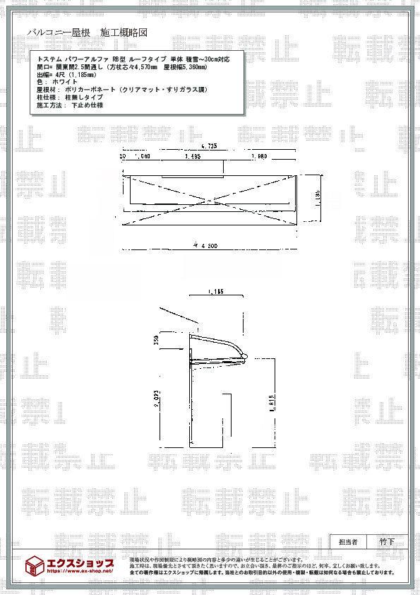 | サイズ | 屋根幅 5,360mm 出幅 1,185mm |