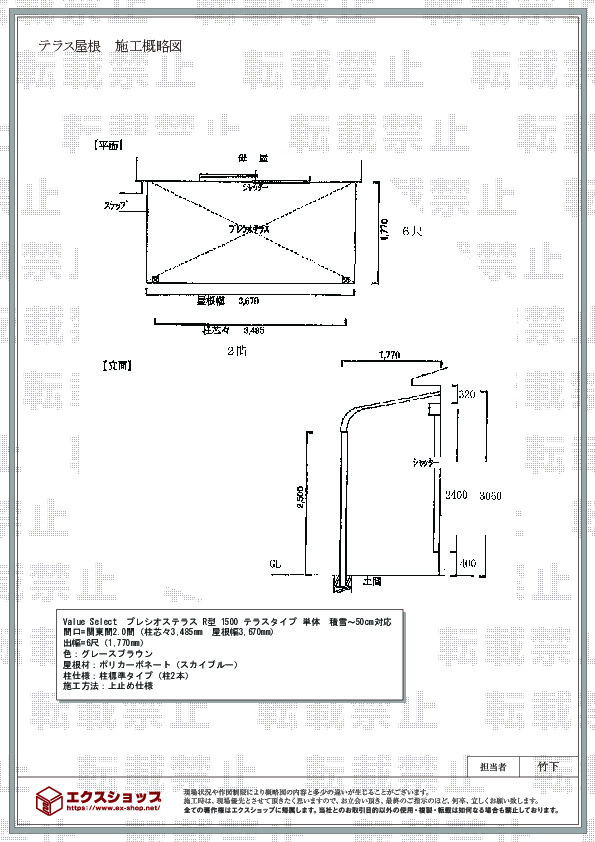 | サイズ | 屋根幅 3,670mm 出幅 1,770mm |