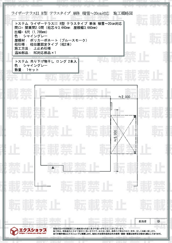 | サイズ | 屋根幅 3,660mm 出幅 1,785mm |