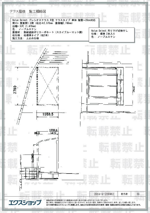 | サイズ | 屋根幅 2,760mm 出幅 1,470mm |