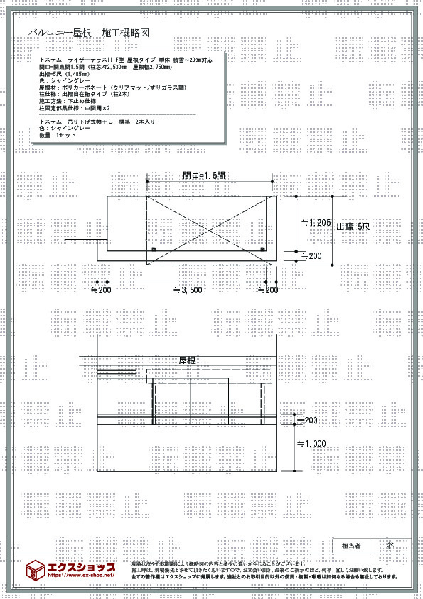 | サイズ | 屋根幅 2,750mm 出幅 1,485mm |