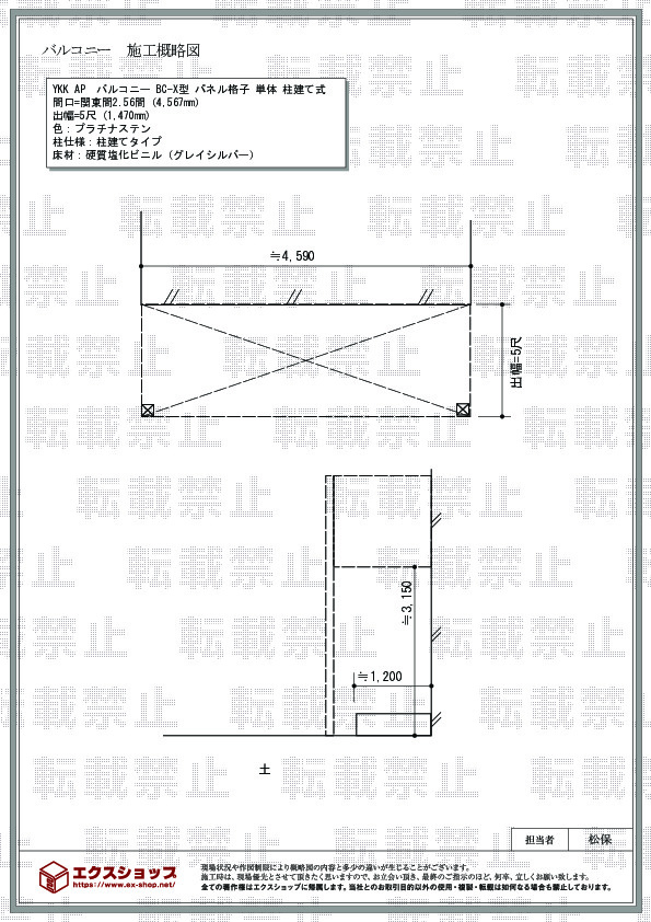 | サイズ | 間口 4,567mm 出幅 1,470mm |