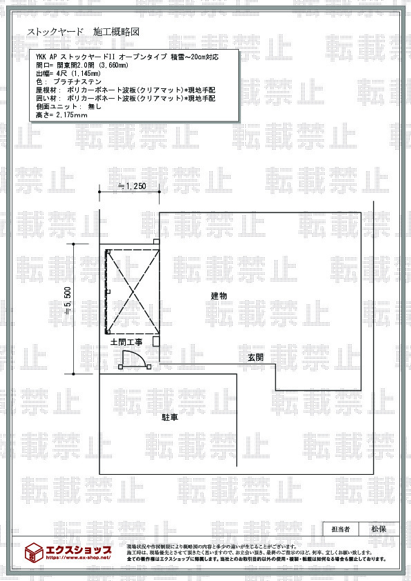 | サイズ | 間口 5,500mm 出幅 2,000mm |