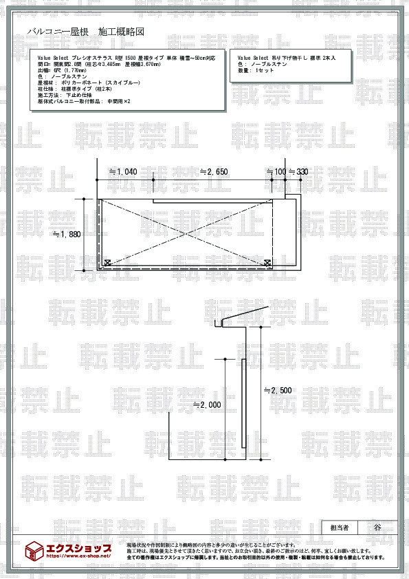 | サイズ | 屋根幅 3,670mm 出幅 1,770mm |