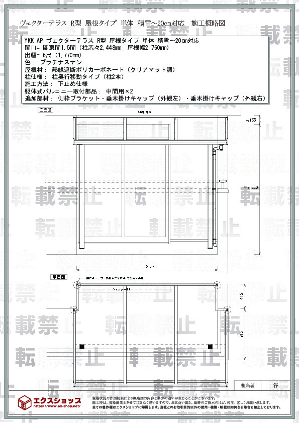 サイズ | 屋根幅 2,760mm 出幅 1,770mm |