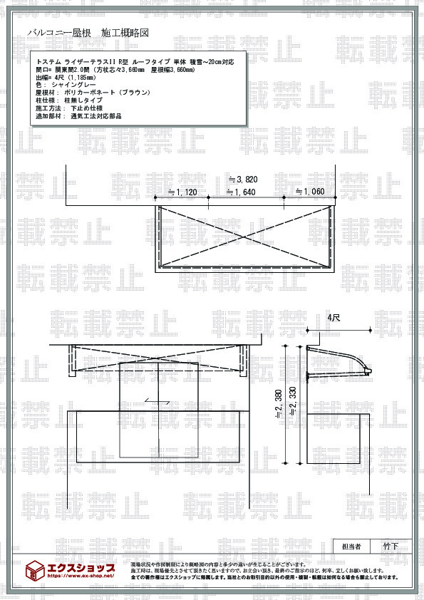 この度は、ライザーテラスII R型の施工をご依頼頂きまして、誠に有り難うございます。シャイングレーとポリカーボネート(クリアマット/すりガラス調)の組み合わせが、明るく、清々しいお仕上がりでございますね。お気に召して頂き、永くご愛用頂けましたら幸いでございます。これからも、お客様のご期待を裏切らないよう精進して参りますので、また機会がございましたら、是非エクスショップをご利用頂けますよう、宜しくお願い致します。