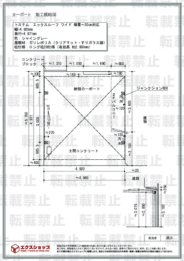 | 屋根高等 | ロング柱28仕様(有効高 約2,800mm) |