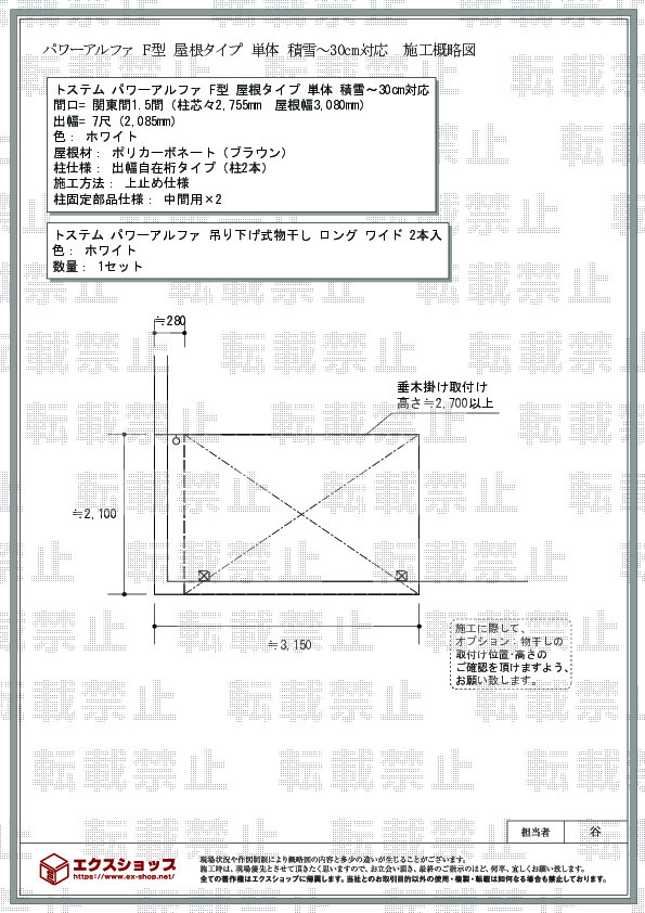 | 柱仕様 | 出幅自在桁タイプ(柱2本) |