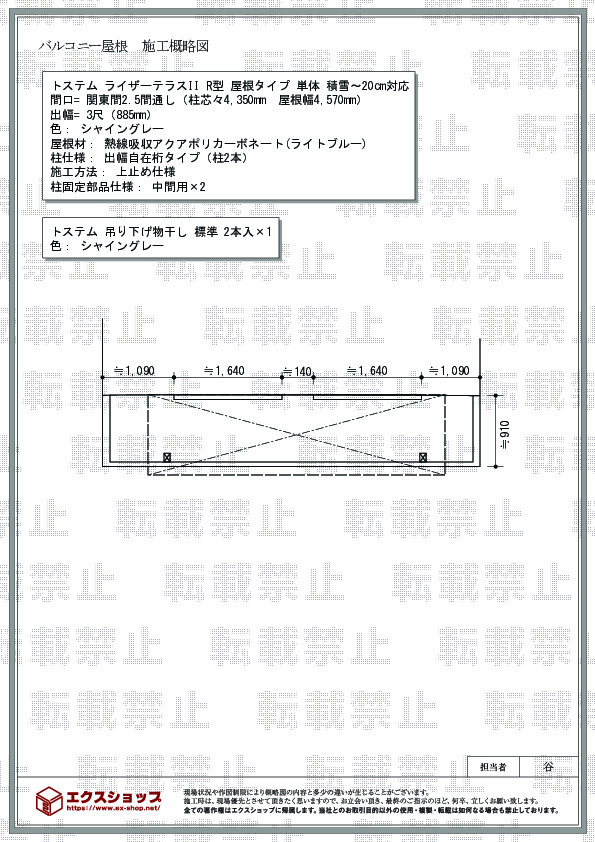 | サイズ | 屋根幅 4,570mm 出幅 885mm |