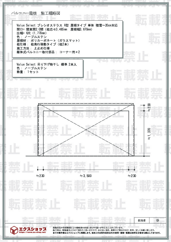サイズ | 屋根幅 3,670mm 出幅 1,770mm |