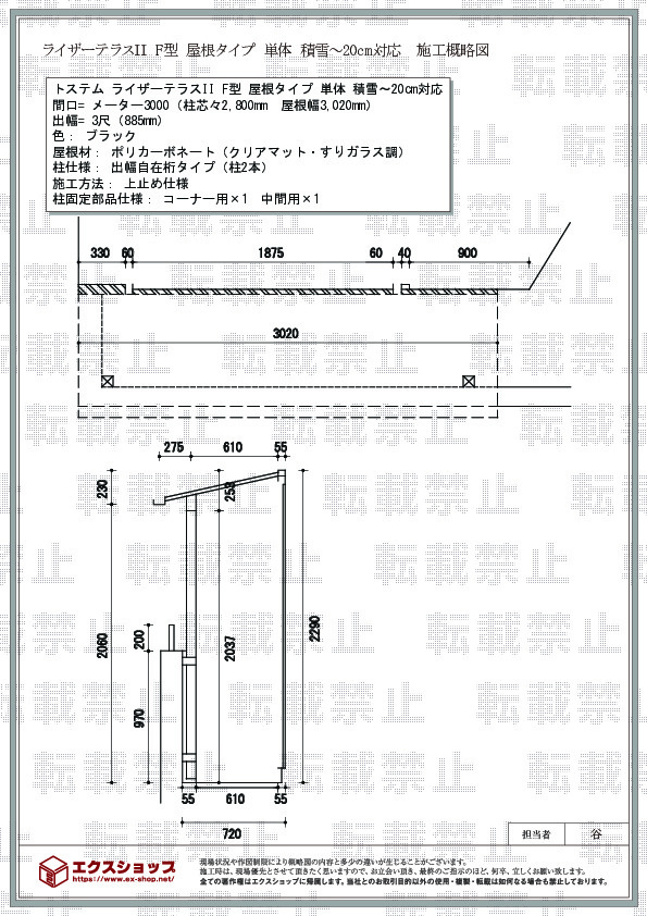 | サイズ | 屋根幅 3,020mm 出幅 885mm |