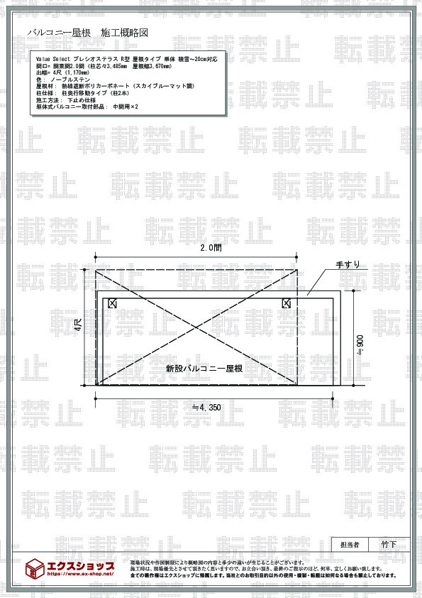 | サイズ | 屋根幅 3,670mm 出幅 1,170mm |