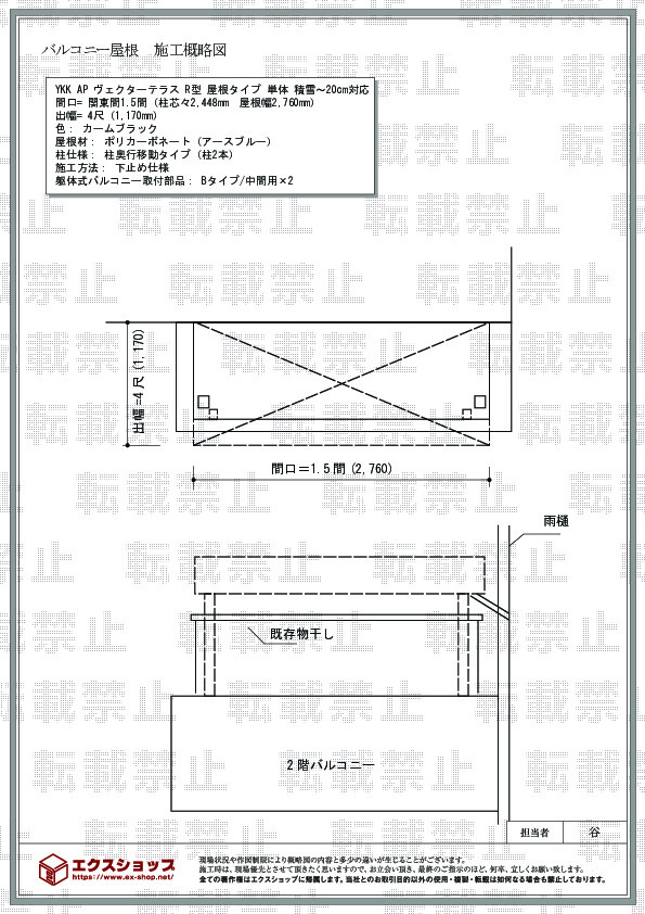 | サイズ | 屋根幅 2,760mm 出幅 1,170mm |