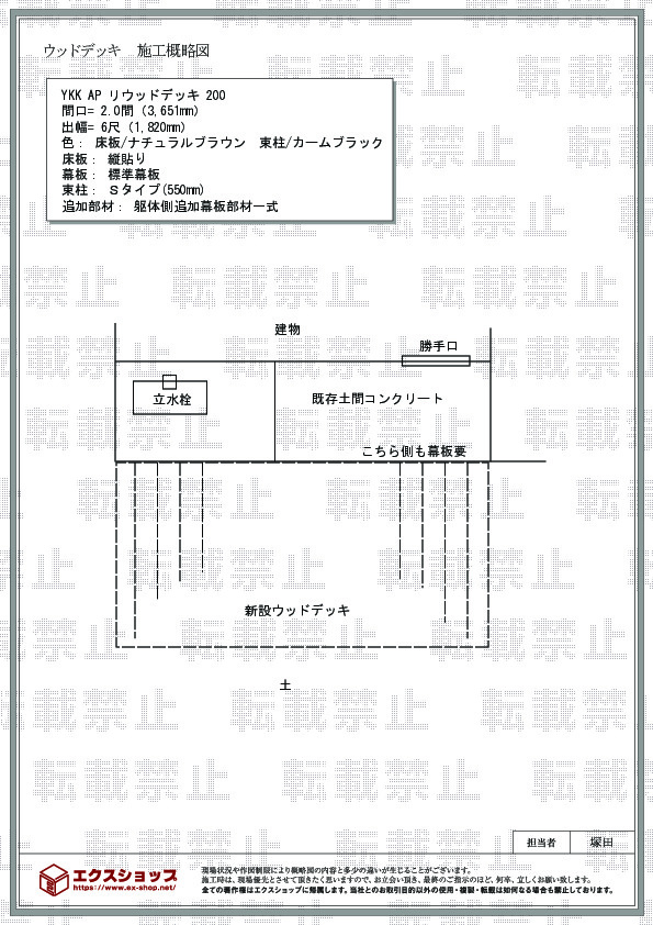 この度はリウッドデッキ 200の施工をご依頼頂きまして、誠に有り難うございます。「エクスショップにして良かった」とのお言葉を頂戴出来、私どもも感無量でございます。高さが低く広々としたウッドデッキは、安全面にも安心しておくつろぎ頂ける、とても素敵なスペースでございますね。リウッドはプラスチックと木粉を配合した新素材で、ささくれがない・水はけがよい・腐りにくい・長時間変色しにくいなどの利点を備えた商品でございます。お気に召して頂き永くご愛用頂きましたら幸いでございます。今後はスピード面でもご満足頂けますよう、迅速且つきめ細やかな対応に努めて参る所存でございますので、また機会がございましたら、エクスショップをご利用下さいますよう、宜しくお願い申し上げます。