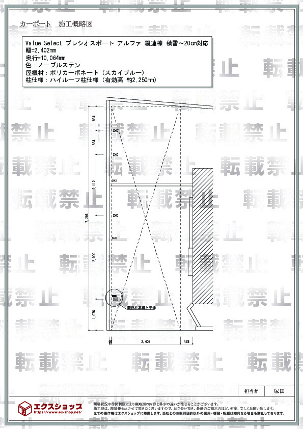 プレシオスポート アルファ 縦連棟の施工をエクスショップにご依頼頂き、誠に有り難うございました。担当致します施工士も弊社スタッフも、常にお客様にご満足して頂くことを第一に考えておりますので、このようなお言葉を頂き、これからの励みになります。これからもお客様に100%ご満足頂けるショップを目指し、日々努力を重ねて参ります。また機会がございましたら、是非弊社にご用命くださいますよう、宜しくお願い致します。この度のご利用、誠に有り難うございました。
