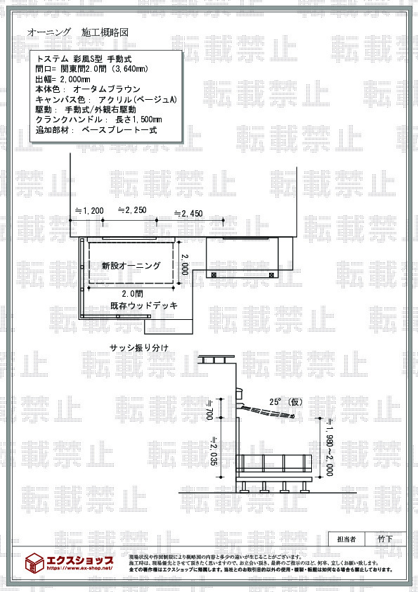 この度は、彩風S型の施工ご依頼を頂き誠に有り難うございます。ベージュAのキャンバスがご自宅の外観に調和し、優しい印象のとても素敵なお仕上がりでございますね。施工日につきましては、ご希望に沿うことができず誠に申し訳ございませんでした。今後、メーカーとの連携をとり密にしお客様に快適にご利用頂ける様、精進して参りたいと存じます。又機会がございましたら是非エクスショップをご利用下さいますよう、宜しくお願い致します。