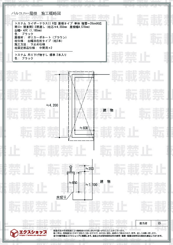 | サイズ | 屋根幅 4,570mm 出幅 1,185mm |