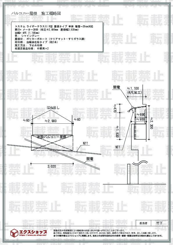 | サイズ | 屋根幅 3,020mm 出幅 1,185mm |