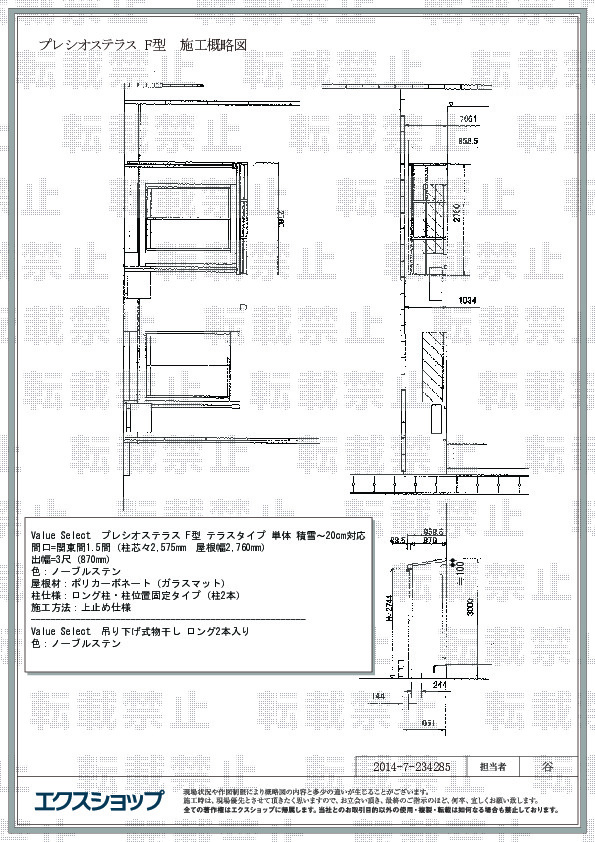 サイズ | 屋根幅 2,760mm 出幅 870mm |