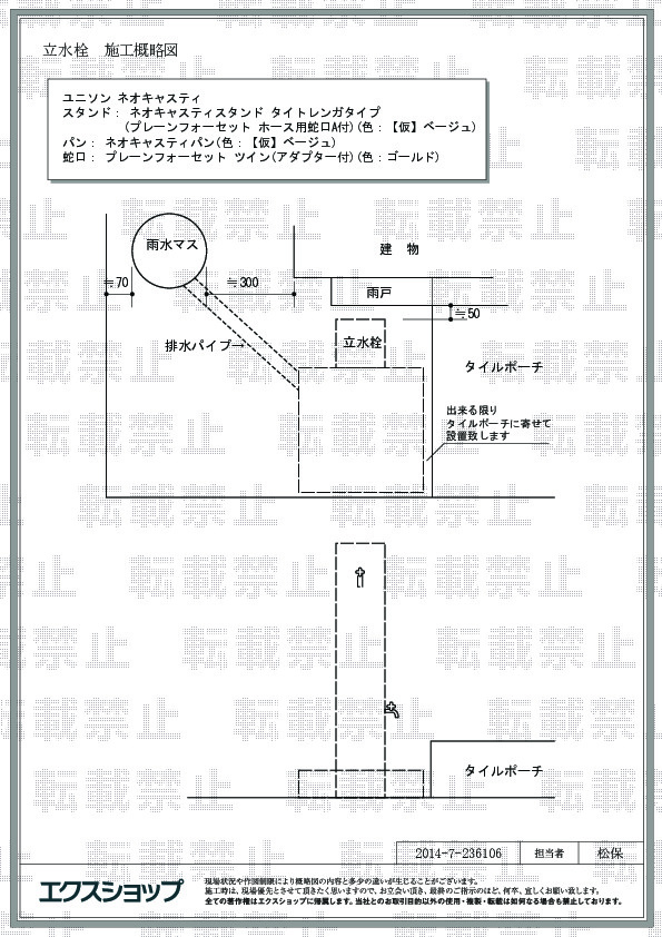この度は、エクスショップをご利用頂きまして、誠に有り難うございます。煉瓦調の立水栓が、お庭のアクセントとなり、素敵なお仕上がりでございますね。施工完了までにお時間を頂戴致しましたこと、心よりお詫び申し上げます。今後は、丁寧な対応とともに、スピードの面でもご満足頂けますよう、努力して参りたいと存じます。またのご利用を、心よりお待ち申し上げております。