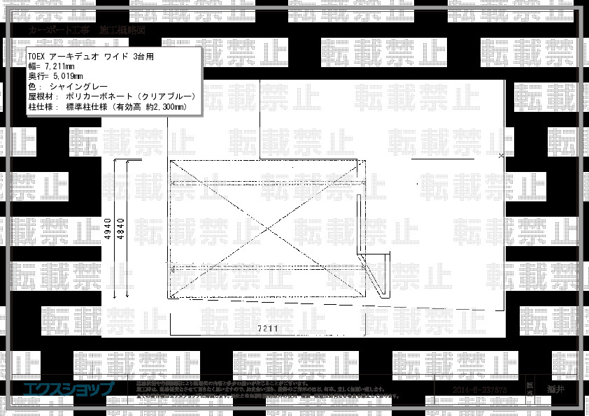 この度はアーキデュオ ワイドの施工をご依頼頂き、誠に有り難うございました。上品なシャイングレーのフレームとポリカーボネート(クリアブルー)の屋根材を取り合わせたカーポートが綺麗に納まり、広い駐車スペースをしっかりと覆う頼もしい存在でございますね。今回施工したエクステリアにより、お客様の暮らしがより豊かで快適なものとなりますことを願っております。今後も、常に、お客様のご希望にかなった完成を目指し、努力して参ります。また機会がございましたら、是非エクスショップにご用命頂きますよう宜しくお願い致します。