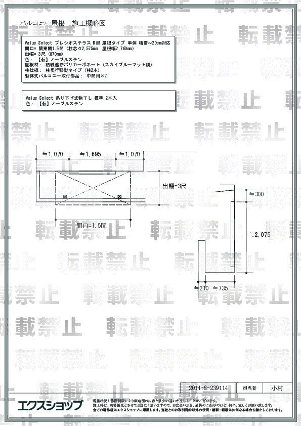 | サイズ | 屋根幅 2,760mm 出幅 870mm |