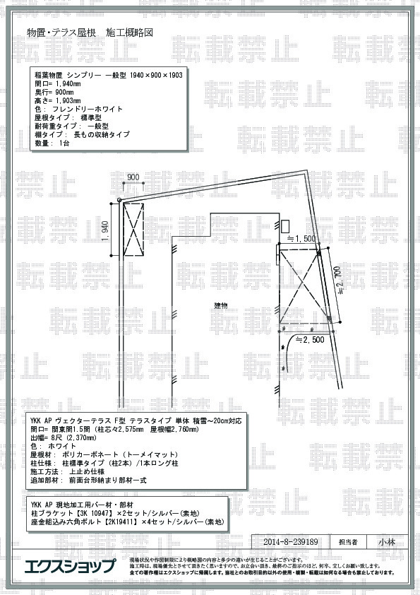 サイズ | 屋根幅 2,760mm 出幅 2,370mm |