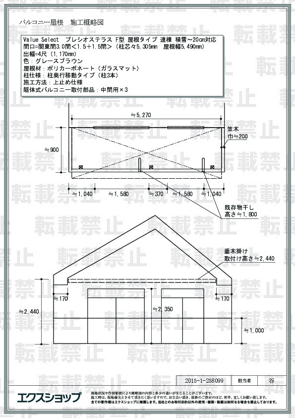 | サイズ | 屋根幅 5,490mm 出幅 1,170mm |