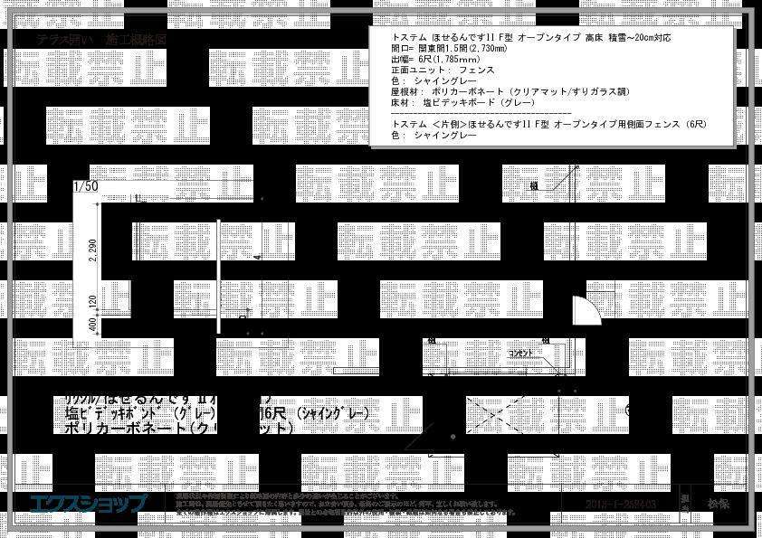サイズ | 間口 2,730mm 出幅 1,785mm |