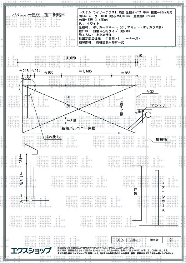 | サイズ | 屋根幅 4,020mm 出幅 1,485mm |