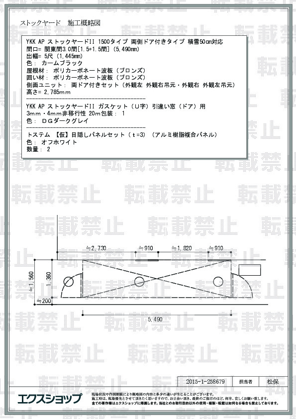 この度はストックヤードII 1500タイプ 両側ドア付きタイプの施工をご依頼頂き、誠に有り難うございました。雨風をしっかりと遮る空間がお庭に完成し、天候に左右されることなく快適にお過ごし頂けるものと存じます。今回施工したエクステリアにより、お客様の暮らしがより豊かで快適なものとなりますことを願っております。今後も、常に、お客様のご希望にかなった完成を目指し、努力して参ります。また機会がございましたら、是非エクスショップにご用命頂きますよう宜しくお願い致します。