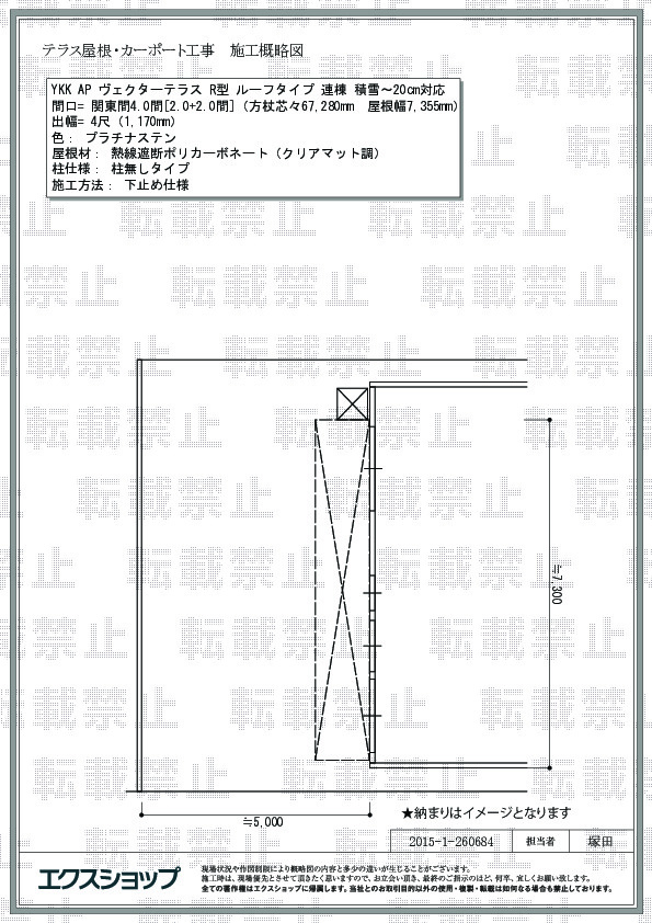 | サイズ | 屋根幅 7,355mm 出幅 1,170mm |