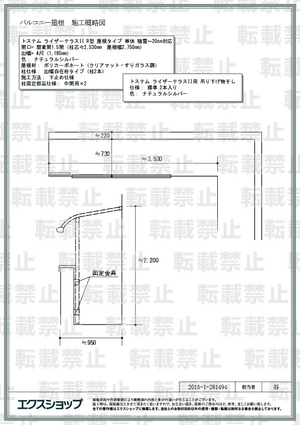 | サイズ | 屋根幅 2,750mm 出幅 1,185mm |