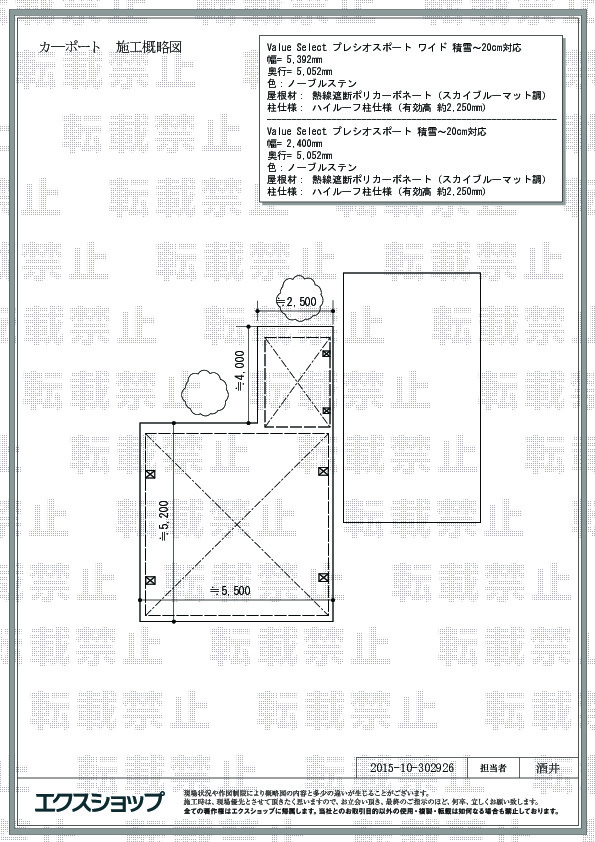 プレシオスポート ワイド とプレシオスポート の2点の施工のご依頼を頂きまして、誠に有り難うございます。木漏れ日を感じられる美しいお庭のスペースに、カーポートが違和感の無く完成し、雨の日にもスムーズにお車の乗り降りをして頂けるものと存じます。熱線遮断ポリカーボネート(スカイブルーマット調)の屋根が夏場の車内の温度上昇を軽減しますので、暑い夏にも快適にお使い頂けるものと存じます。施工後の乾燥時間につきまして、お客様にご不便をお掛けし、大変申し訳ございませんでした。今後は連絡の徹底を心掛けて参りますので、今後ともエクスショップをご愛顧頂きますよう、宜しくお願い申し上げます。