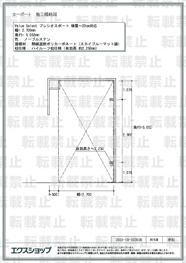 | サイズ | 幅 2,700mm 奥行 5,052mm |