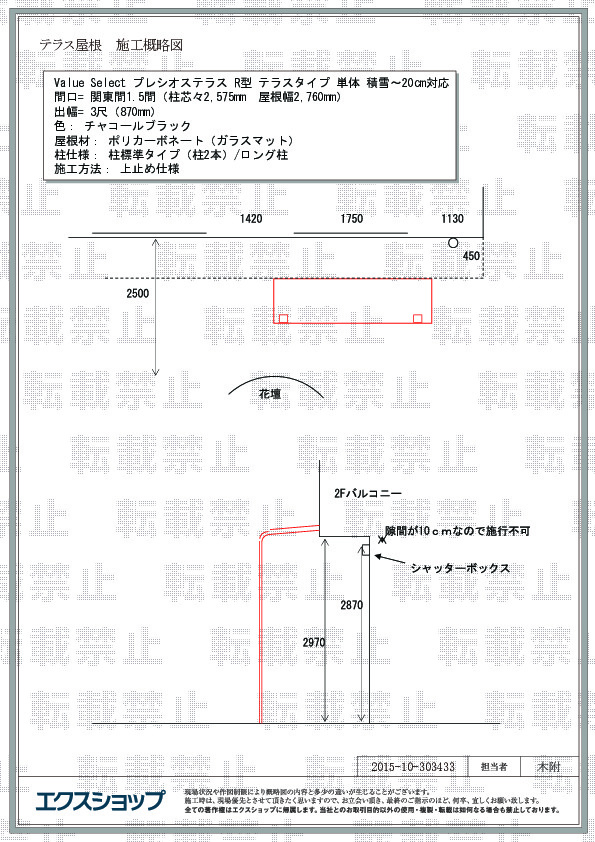 | サイズ | 屋根幅 2,760mm 出幅 870mm |