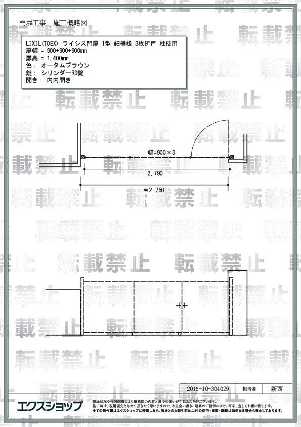 四国化成 ブルーム門戸2型 3枚折り扉の購入・施工は可能ですか?