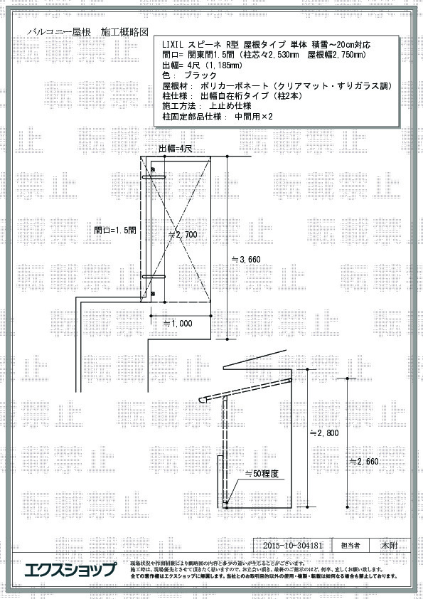 | サイズ | 屋根幅 3,020mm 出幅 1,185mm |