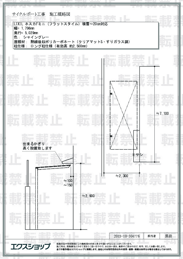 ネスカFミニ (フラットスタイル)の施工をご依頼頂きまして、誠に有り難うございます。圧迫感を感じさせないフラットな屋根が完成して、自転車置き場としてだけではなく、様々な用途にご活用頂けますね。今後も、常に、お客様のご希望にかなった完成を目指し、努力して参ります。また機会がございましたら、是非エクスショップにご用命頂きますよう宜しくお願い致します。