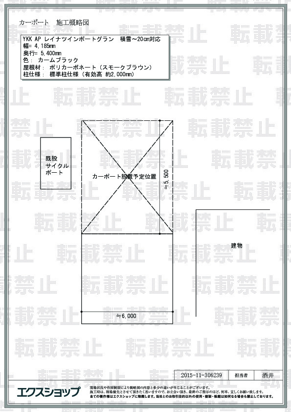 顔のみえないネット販売で高額の商品をご購入頂く際に、不安に思われるのもごもっともでございます。にもかかわらず、弊社を信頼して、施工までお任せ頂き、誠に光栄でございます。美しくお手入れされた植栽の景観を損なうことなく、レイナツインポートグランが納まりましたこと、大変嬉しく存じます。ポリカーボネート(スモークブラウン)の屋根が、お車が雨ざらしになることを防ぎ、新車の美しさを保つことが出来るものと存じます。これからも、お客様の笑顔の為に日々努力して参りますので、また、機会がございましたら、是非エクスショップをご利用頂きますよう、宜しくお願い致します。