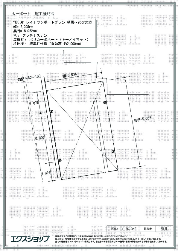 レイナワンポートグランの施工のご依頼を頂きまして、誠に有り難うございます。プラチナステンのシンプルカーポートがお住まいに調和し、明るく開放感のあるお仕上がりでございますね。ポリカーボネート(トーメイマット)の屋根がお車を汚れや傷みから守り、雨の日もお車へのスムーズな乗り降りをご実感して頂けるものと存じます。当商品をお気に召して頂き、永くご愛用頂けましたら幸いでございます。弊社のスタッフの対応にお褒めの言葉を頂戴し、誠に光栄でございます。これからも丁寧で迅速な対応を心掛け、より一層お客様にご満足頂けるよう日々精進して参りますので、また機会がございましたら、是非エクスショップにご用命頂きますよう、宜しくお願い申し上げます。