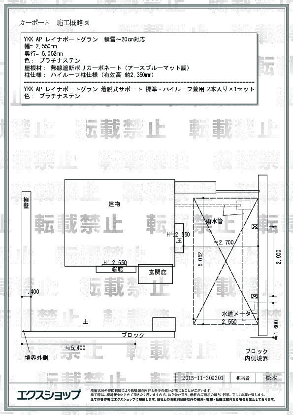 新車を購入するにあたってカーポートを設置することになりエクスショップさんにお願いしました。現地調査の際に疑問点など相談にのっていただけて、安心して施工をお願いすることができました。