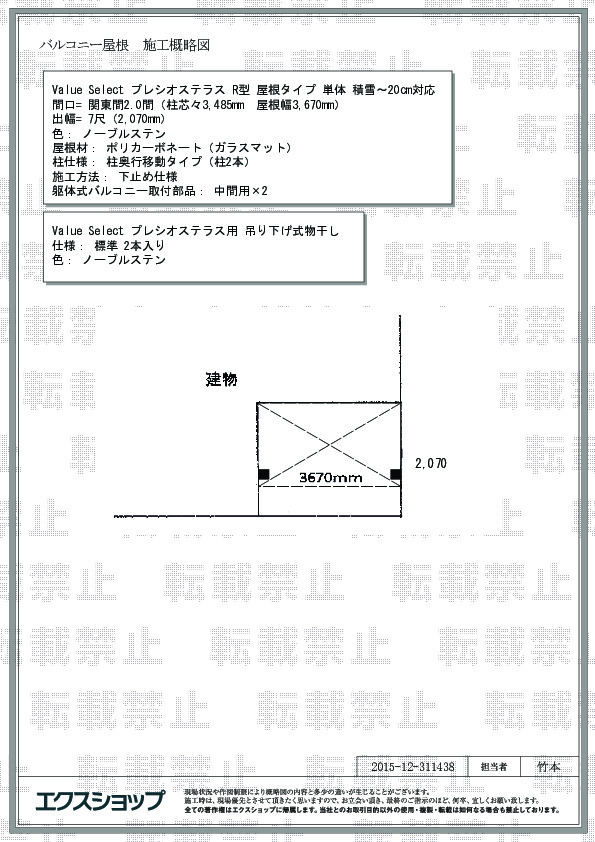 | サイズ | 屋根幅 3,670mm 出幅 2,070mm |