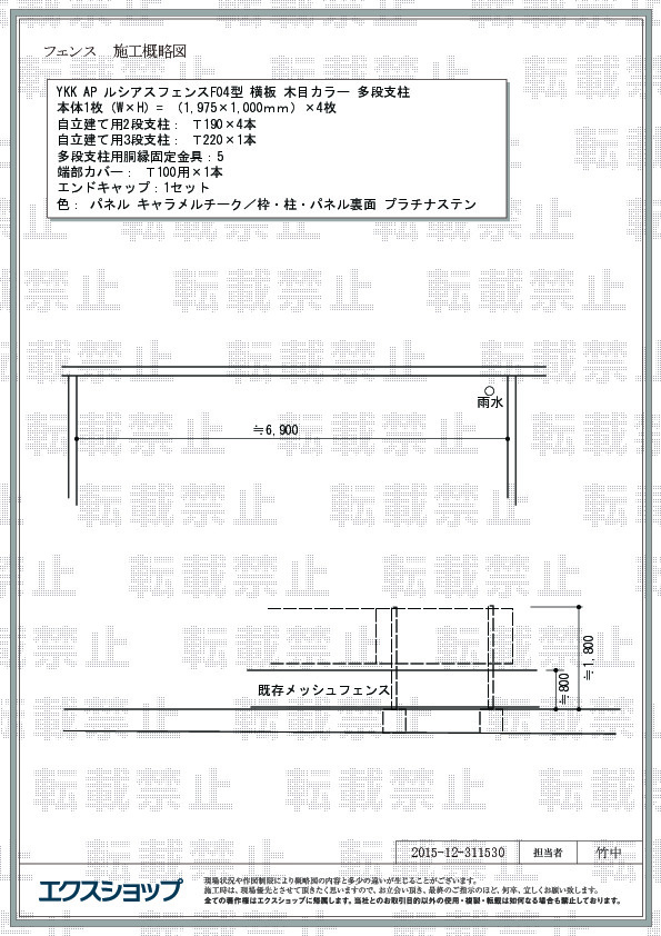 ルシアスフェンスF04型の施工のご依頼を頂きまして、誠に有り難うございます。目線の高さに完成しました目隠しフェンスは、温かみのある木目調で圧迫感がございませんので、快適にお使い頂けるものと存じます。お住まいの防犯性を高め、より一層安心してお過ごし頂ける環境になりましたら、幸いでございます。これからもお客様のご期待に応えられるよう、スタッフ一同努力を重ねて参りますので、また機会がございましたら、是非エクスショップにご用命頂きますよう、宜しくお願い申し上げます。