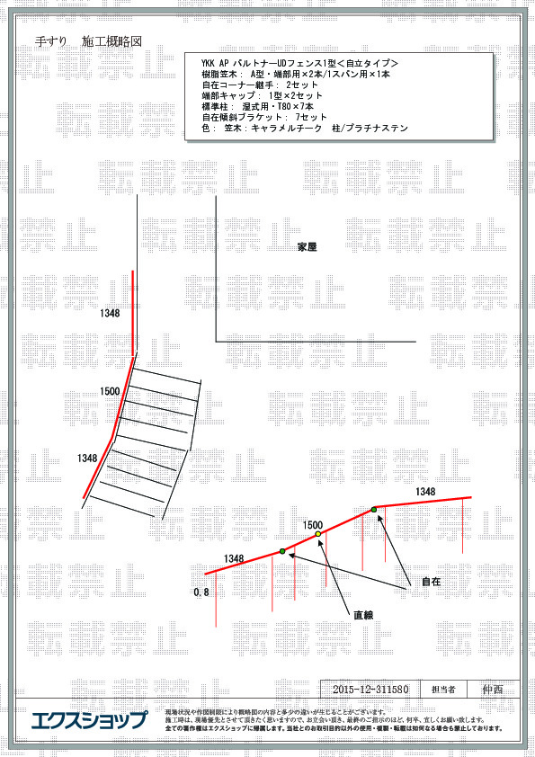 この度は、手すりの施工をご依頼頂きまして、誠に有り難うございます。お手入れの行き届いた敷地に、シンプルなデザインの手すりが調和して、違和感のないお仕上がりでございますね。施工担当者にお褒めのお言葉を頂き、誠に有り難うございます。経験豊かな施工担当者の高い技術力には、私どももいつも感銘を受けております。これからも、エクスショップをご利用頂いた皆様に笑顔の輪が広がりますよう、なお一層の努力を重ねて参りたいと存じます。またのご利用を、心よりお待ち申し上げております。