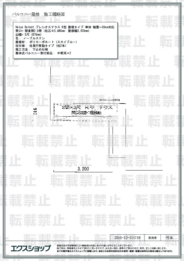 | サイズ | 屋根幅 3,670mm 出幅 870mm |